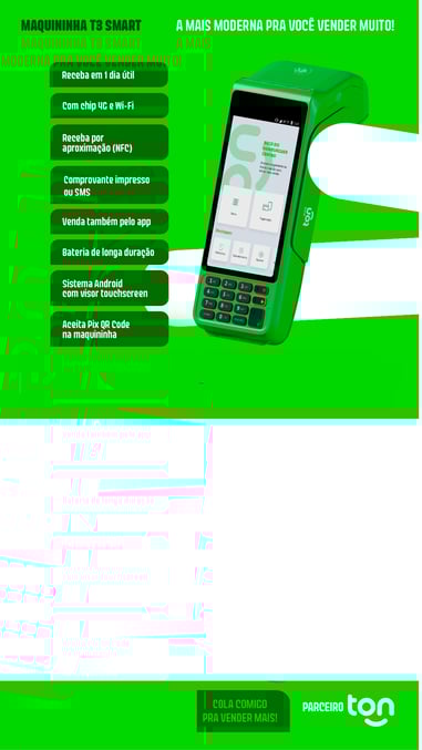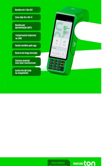 No parceiro de vendas ton, oferecemos soluções práticas e seguras para impulsionar suas vendas, com maquininhas modernas e suporte 24h para garantir seu sucesso no mercado.