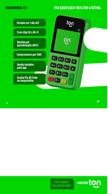 Com planos flexíveis e taxas competitivas, o parceiro ton é a escolha ideal para quem deseja simplificar o processo de vendas e focar no crescimento do negócio.
